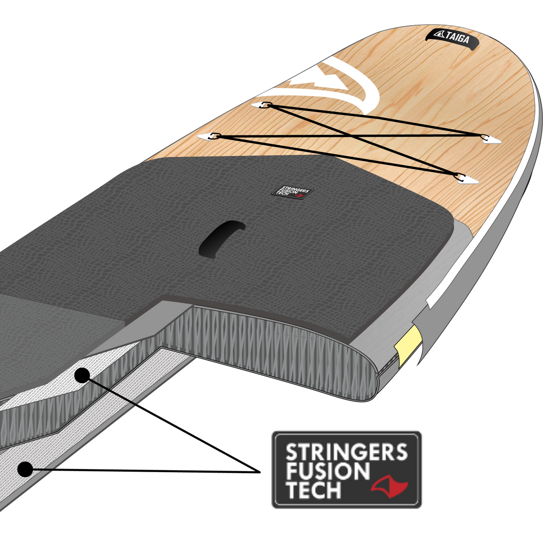 Our boards are built with high quality X-WOVEN DROPSTITCH technology combined with our unique STRINGER TECH & FUSION SKIN, which consists of 2 fiberglass stiffeners fused together on the top and bottom of the board. This type of construction provides outstanding stiffness without compromising weight. We’ve also added rail bands for improved torsional strength and rigidity.