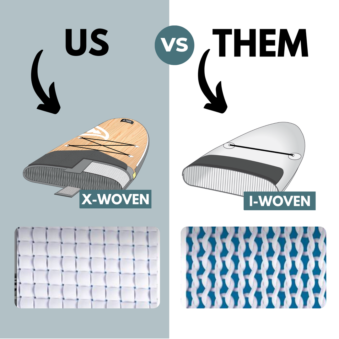 Since 2021, thanks to X-WOVEN DROPSTICTH Technology, the majority of our TAIGA boards now have a thickness as low as 4.75", offering a closer contact with the water. Combined with increased rigidity, the glide of our inflatable SUPs comes close to that of a hard board...you’re going to love it!