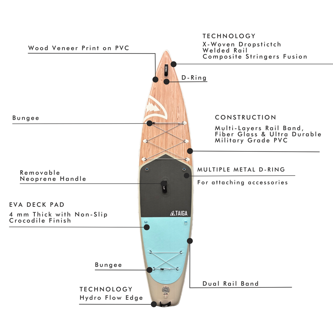 Board pressure: 20 PSI for a maximum rigidity with the X-WOVEN FUSION & STRINGER tech. Approved by TAIGA.